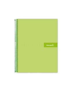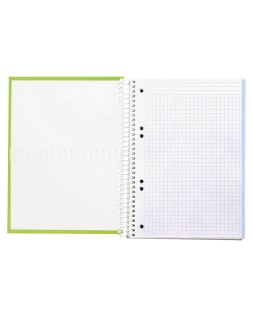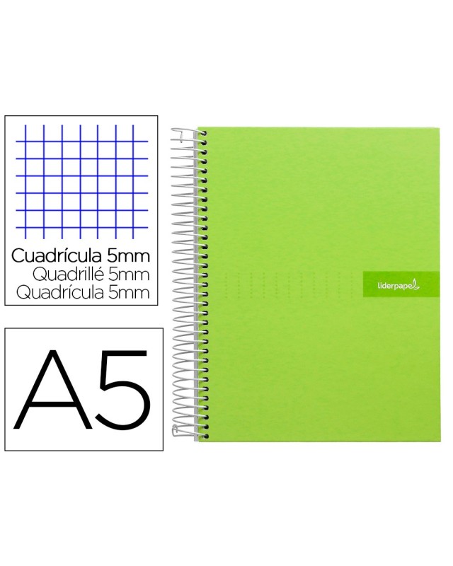 Cuaderno espiral liderpapel a5 micro crafty tapa forrada 120h 90 gr cuadro 5mm 5 bandas6 taladros color verde