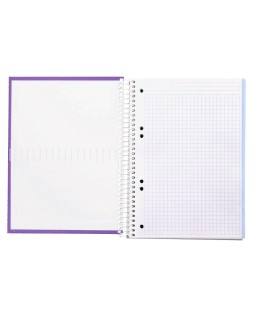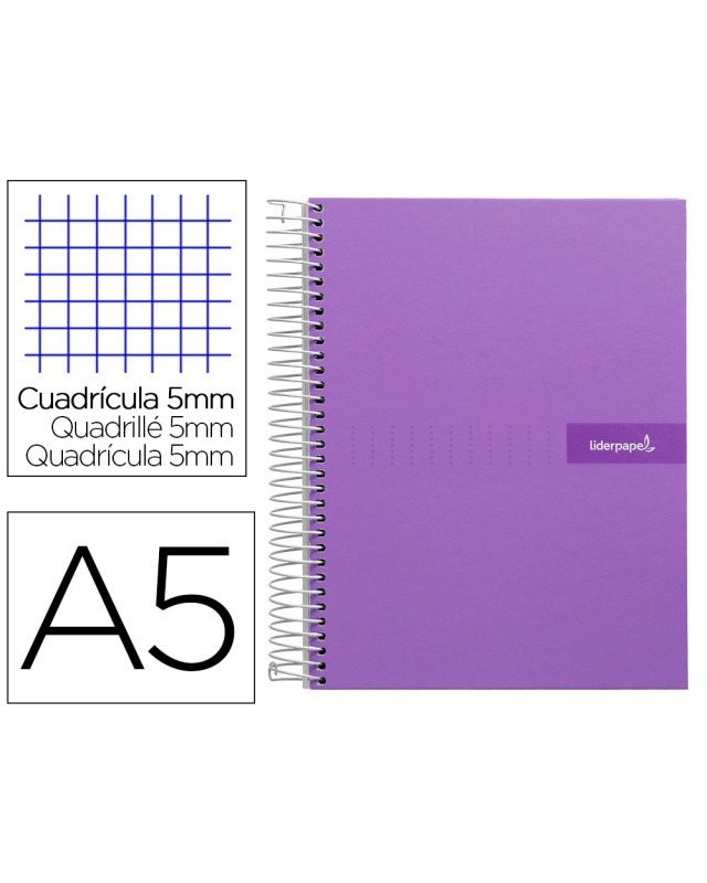 Cuaderno espiral liderpapel a5 micro crafty tapa forrada 120h 90 gr cuadro 5mm 5 bandas6 taladros color violeta