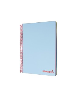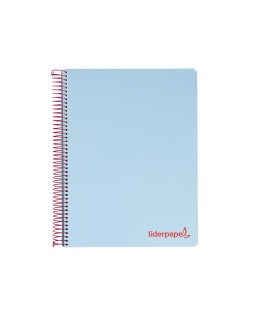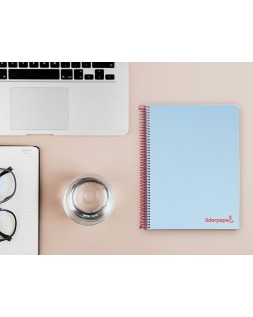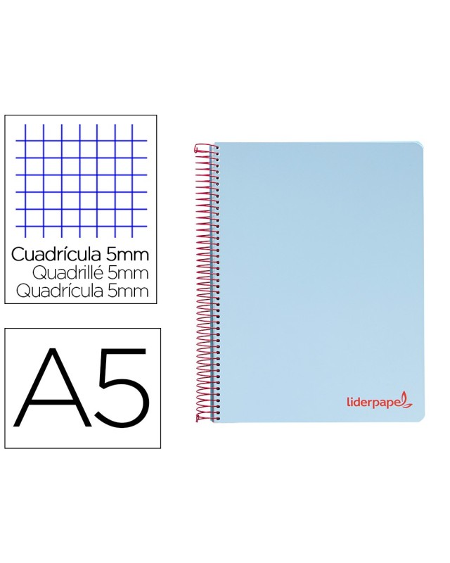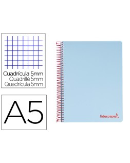 Cuaderno espiral liderpapel a5 micro wonder tapa plastico 120h 90g cuadro 5mm 5 bandas 6 taladros color celeste