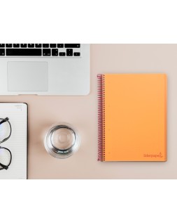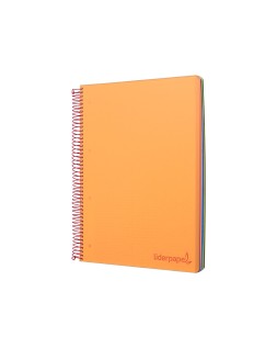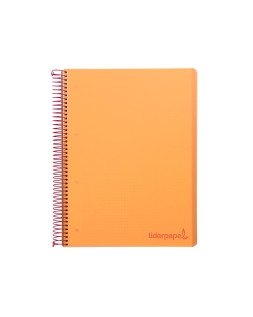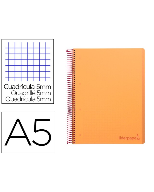 Cuaderno espiral liderpapel a5 micro wonder tapa plastico 120h 90g cuadro 5mm 5 bandas 6 taladros color naranja