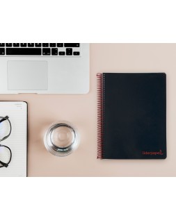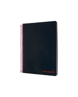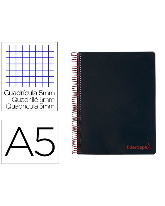 Cuaderno espiral liderpapel a5 micro wonder tapa plastico 120h 90g cuadro 5mm 5 bandas 6 taladros color negro