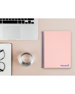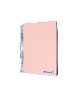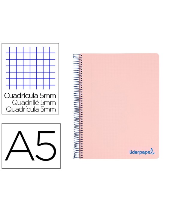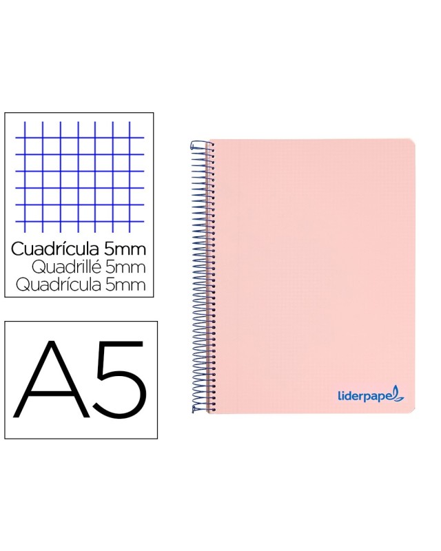 Cuaderno espiral liderpapel a5 micro wonder tapa plastico 120h 90g cuadro 5mm 5 bandas 6 taladros color rosa