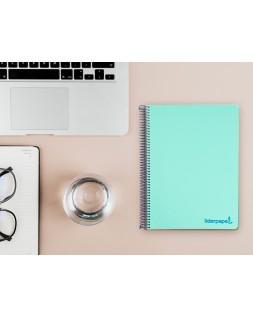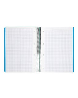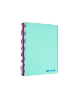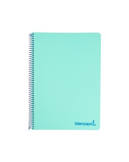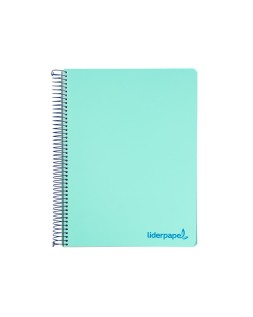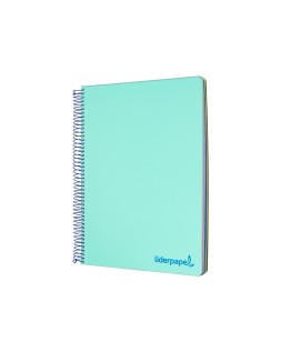 Cuaderno espiral liderpapel a5 micro wonder tapa plastico 120h 90g cuadro 5mm 5 bandas 6 taladro color verde turquesa