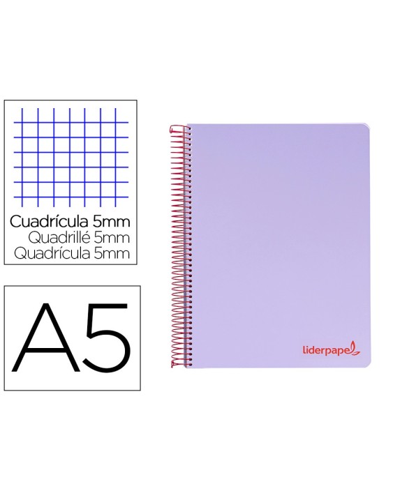 Cuaderno espiral liderpapel a5 micro wonder tapa plastico 120h 90g cuadro 5mm 5 bandas 6 taladros color violeta