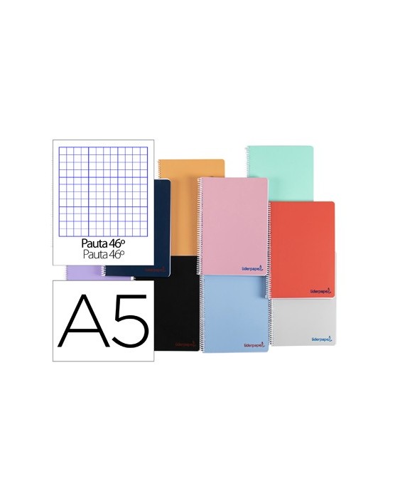 Cuaderno espiral liderpapel a5 wonder tapa plastico 80h 90g rayado nº46 colores surtidos
