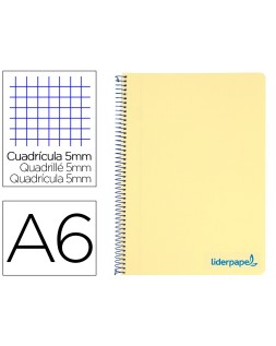 Cuaderno espiral liderpapel a6 micro wonder tapa plastico 120h 90 gr cuadro 5mm 4 bandas color amarillo