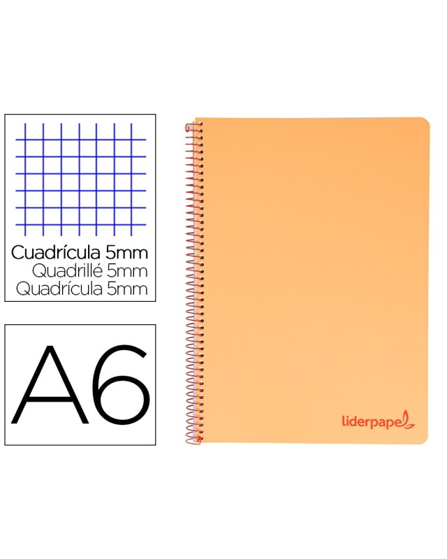 Cuaderno espiral liderpapel a6 micro wonder tapa plastico 120h 90 gr cuadro 5mm 4 bandas color naranja