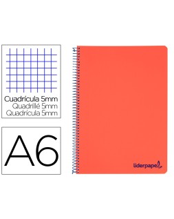 Cuaderno espiral liderpapel a6 micro wonder tapa plastico 120h 90 gr cuadro 5mm 4 bandas color rojo