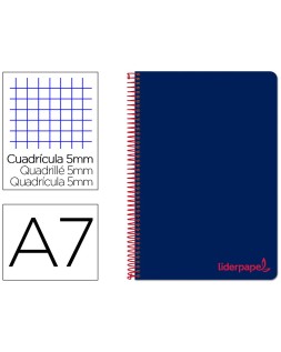 Cuaderno espiral liderpapel a7 micro wonder tapa plastico 100h 90 gr cuadro 5mm 4 bandas color azul marino