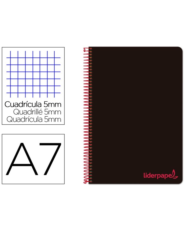 Cuaderno espiral liderpapel a7 micro wonder tapa plastico 100h 90 gr cuadro 5mm 4 bandas color negro