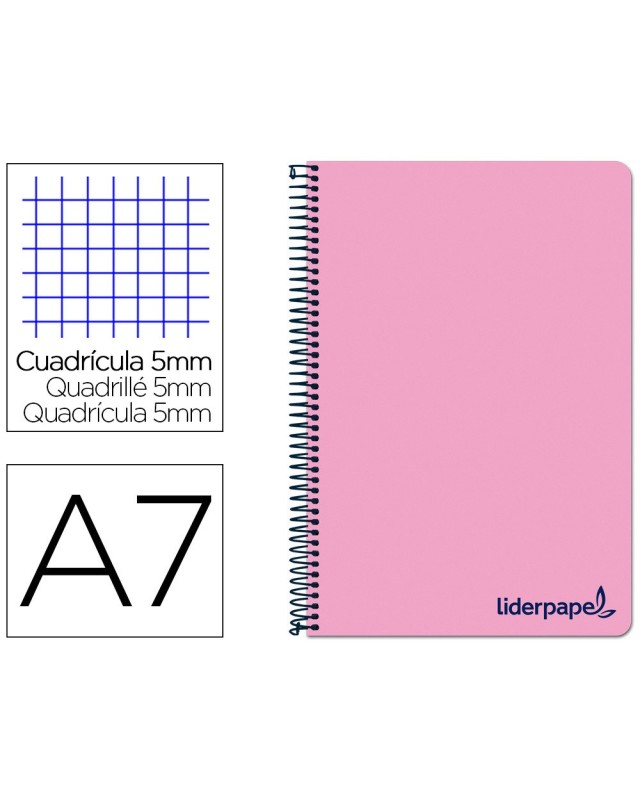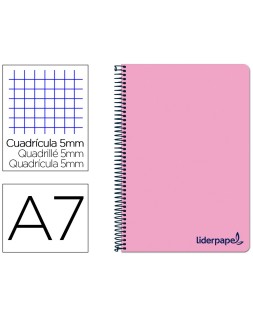 Cuaderno espiral liderpapel a7 micro wonder tapa plastico 100h 90 gr cuadro 5mm 4 bandas color rosa