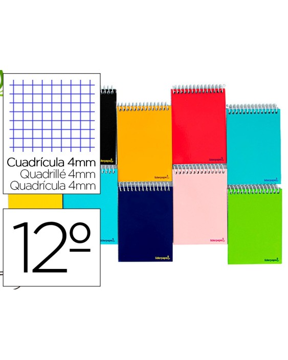 Cuaderno espiral liderpapel bolsillo doceavo apaisado smart tapa blanda 80h 60gr cuadro 4mm colores surtidos