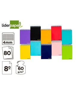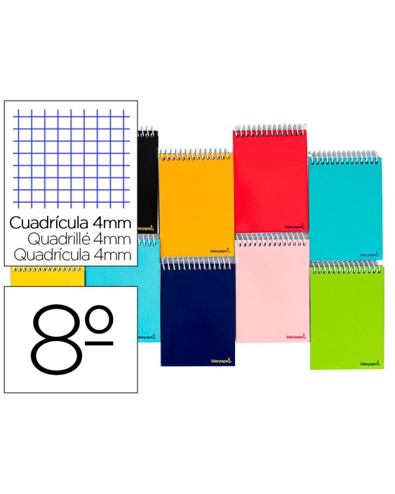 Cuaderno espiral liderpapel bolsillo octavo apaisado smart tapa blanda 80h 60gr cuadro 4mm colores surtidos