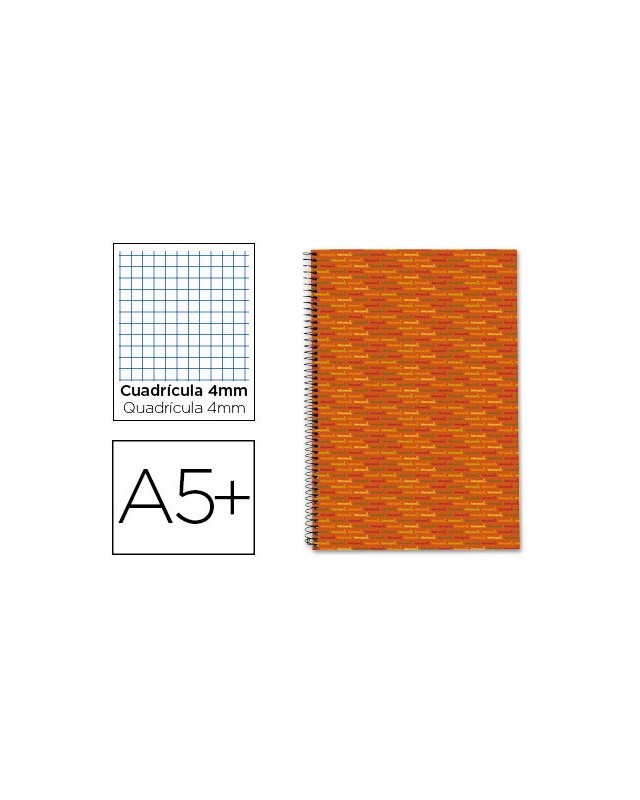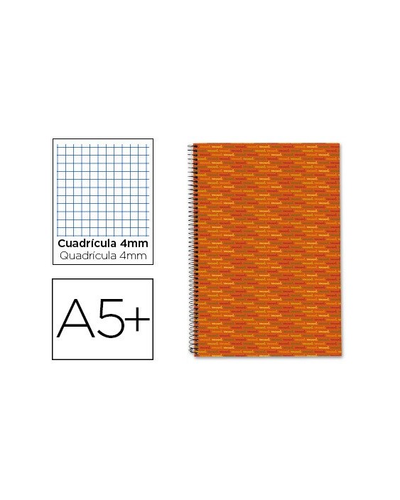 Cuaderno espiral liderpapel cuarto multilider tapa forrada 80h 80 gr cuadro 4mm con margen naranja