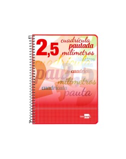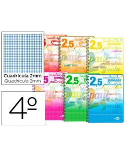Cuaderno espiral liderpapel cuarto pautaguia tapa blanda 40h 75gr cuadro pautado 2,5mm con margen colores surtidos