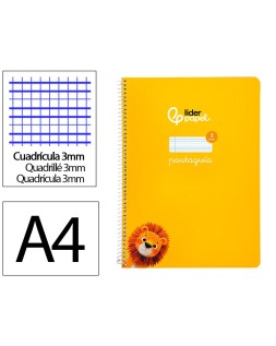 Cuaderno espiral liderpapel a4 pautaguia tapa blanda 80h 75 gr cuadro pautado 3mm color amarillo