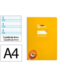 Cuaderno espiral liderpapel a4 pautaguia tapa blanda 80h 75 gr cuadro pautado 4mm color amarillo