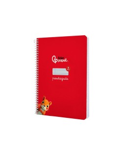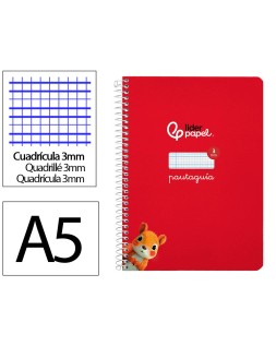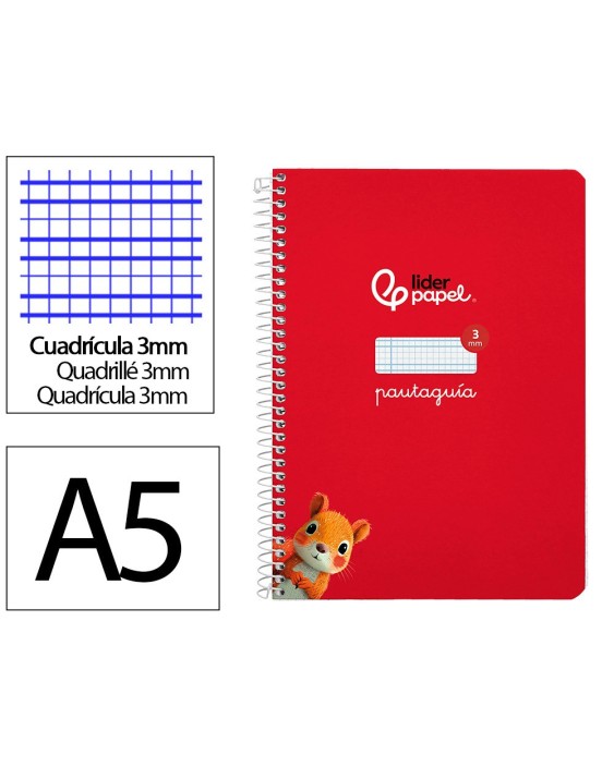 Cuaderno espiral liderpapel a5 pautaguia tapa dura 80h 90 gr cuadro pautado 3mm color rojo