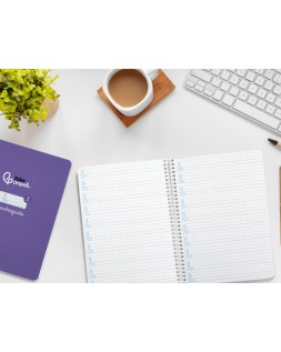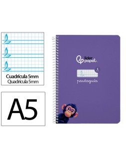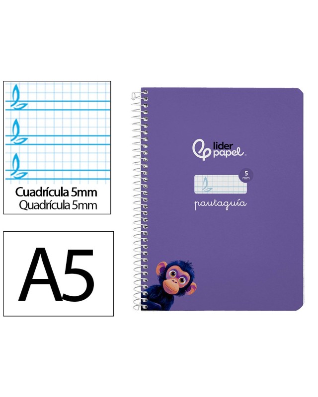 Cuaderno espiral liderpapel a5 pautaguia tapa dura 80h 90 gr cuadro pautado 5mm color lila