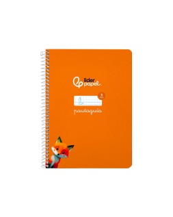 Cuaderno espiral liderpapel a5 pautaguia tapa dura 80h 90 gr cuadro pautado 5mm color naranja