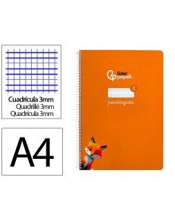Cuaderno espiral liderpapel din a4 pautaguia tapa dura 80h 90 gr cuadro pautado 3mm color naranja