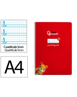 Cuaderno espiral liderpapel din a4 pautaguia tapa dura 80h 90 gr cuadro pautado 5mm color rojo