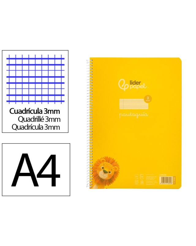 Cuaderno espiral liderpapel a4 pautaguia tapa plastico 80h 90gr cuadro pautado 3mm con margen color amarillo