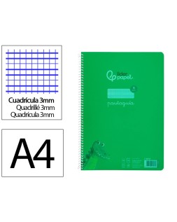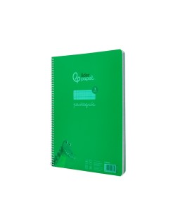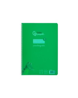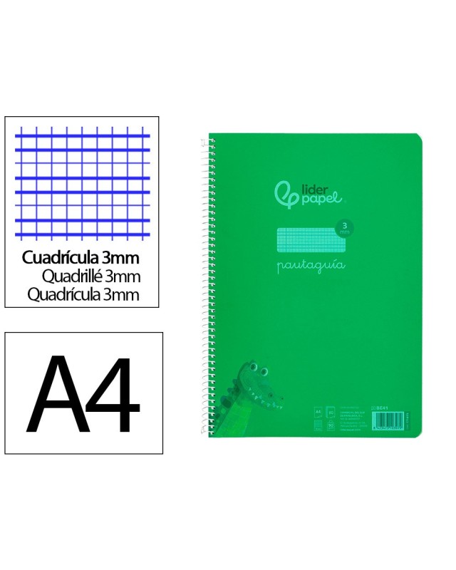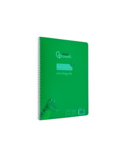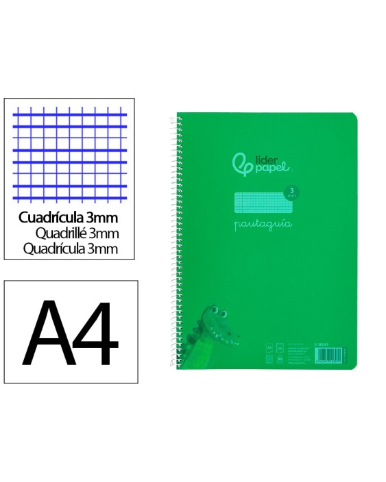 Cuaderno espiral liderpapel a4 pautaguia tapa plastico 80h 90gr cuadro pautado 3mm con margen color verde