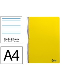 Cuaderno espiral liderpapel a4 smart tapa blanda 80h 75gr pauta 2,5mm con margen color amarillo