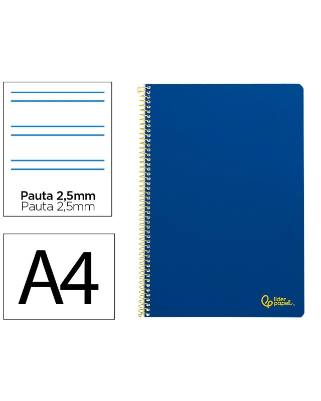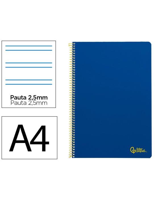Cuaderno espiral liderpapel a4 smart tapa blanda 80h 75gr pauta 2,5mm con margen color azul oscuro
