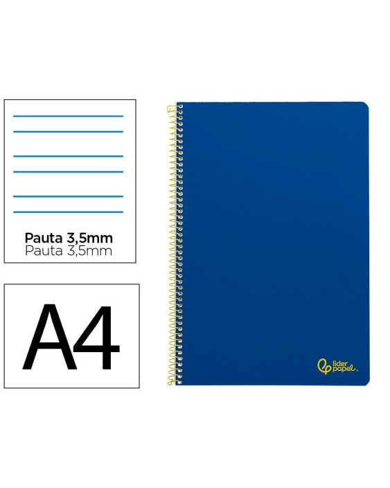 Cuaderno espiral liderpapel a4 smart tapa blanda 80h 75gr pauta 3,5mm con margen color azul oscuro
