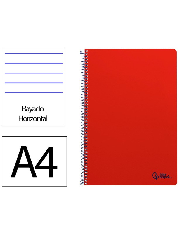 Cuaderno espiral liderpapel a4 smart tapa blanda 80h 75gr rayado horizontal con margen color rojo