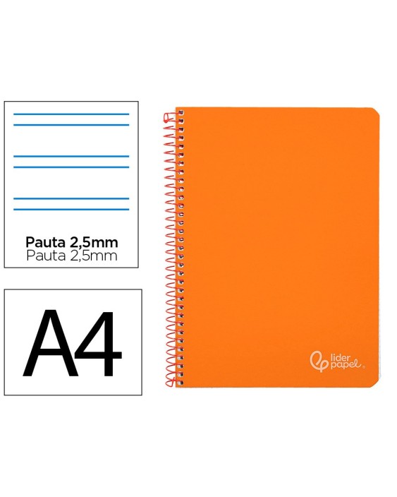 Cuaderno espiral liderpapel a4 witty tapa dura 80h 90gr pauta 2,5mm con margen color naranja