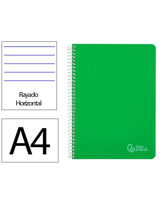 Cuaderno espiral liderpapel a4 witty tapa dura 80h 90gr rayado horizontal con margen color verde