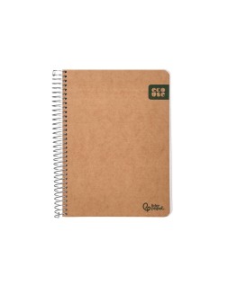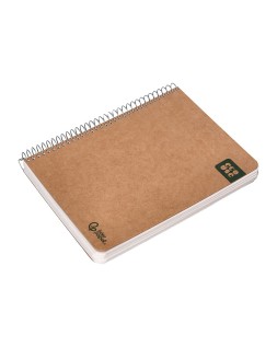 Cuaderno con espiral nylonizada de 120 hojas con papel de 80 gr/m². Coil-Lock. Tapa dura impresa en cartón contracolado kraft 800 gr/m². 100% reciclado. Ofrece una versatilidad excepcional como cuaderno de notas o compañero de viaje, diario escrito o de dibujo. Su diseño resistente y sostenible lo convierte en la elección ideal para aquellos que valoran la calidad y la preocupación por el medio ambiente.