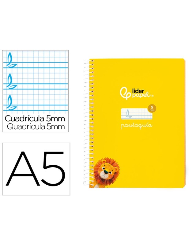 Cuaderno espiral liderpapel din a5 pautaguia tapa blanda 40h 75 gr cuadro pautado 5mm color amarillo