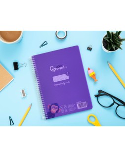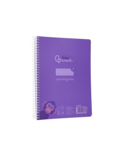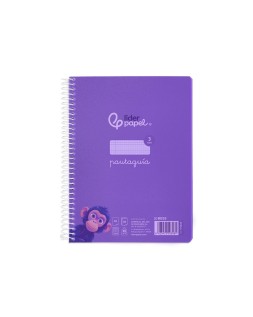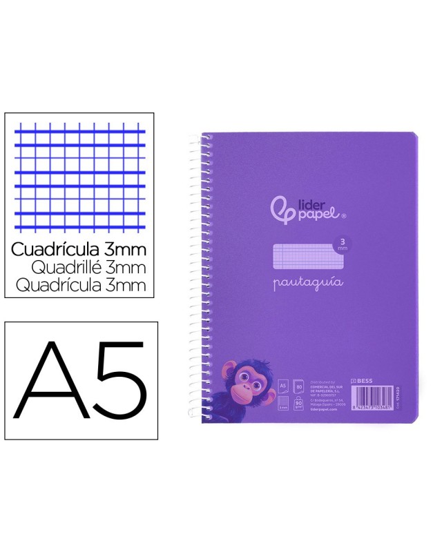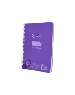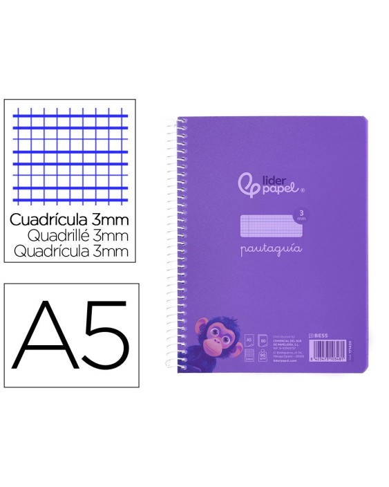 Cuaderno espiral liderpapel a5 pautaguia tapa plastico 80h 90gr cuadro pautado 3 mm con margen color lila