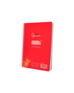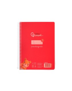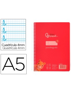 Cuaderno espiral liderpapel a5 pautaguia tapa plastico 80h 90gr cuadro pautado 4mm con margen color rojo