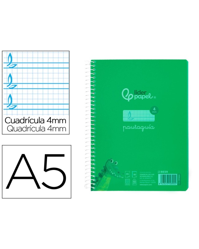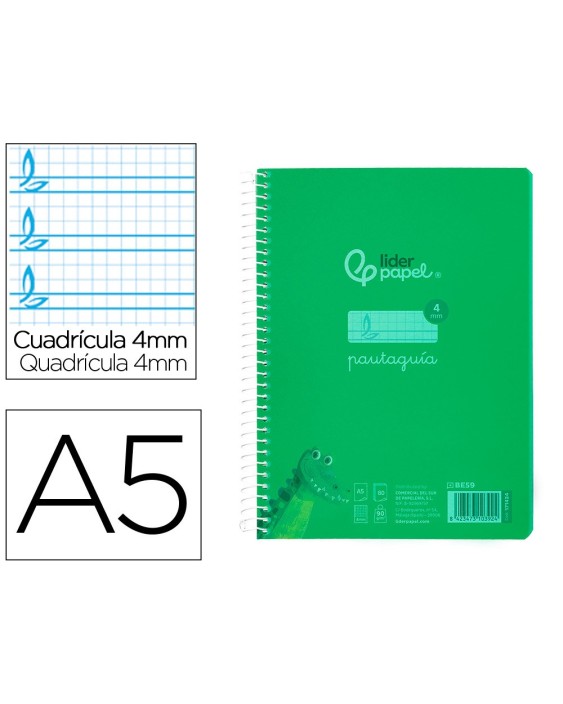 El cuaderno espiral Liderpapel Pautaguía de tamaño Din A5 es una herramienta esencial para la iniciación a la escritura. Tapa y contratapa de tapa de plástico resistente y gama de colores atractiva. Contiene 80 hojas de papel de 90 gramos. Las hojas están diseñadas con un cuadro pautado de 4 mm y márgenes, proporcionando una guía clara y estructurada que ayuda a alinear sus letras y mejorar su caligrafía. Este cuaderno es perfecto para los primeros pasos en la escritura y mayor duración, dada la rigidez de la tapa dura.