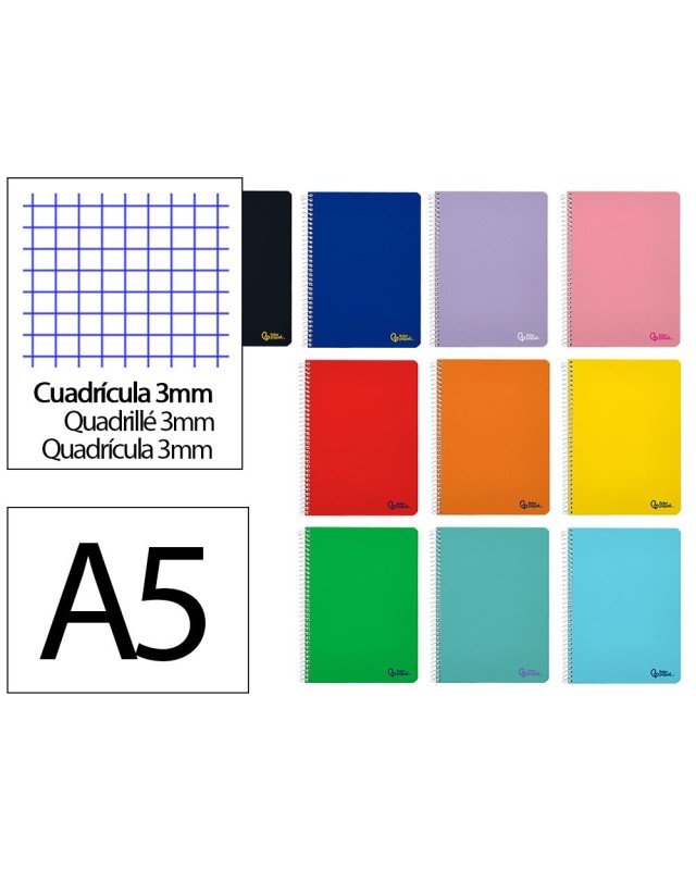 Cuaderno espiral liderpapel din a5 smart tapa blanda 80h 75gr cuadro 3mm con margen colores surtidos