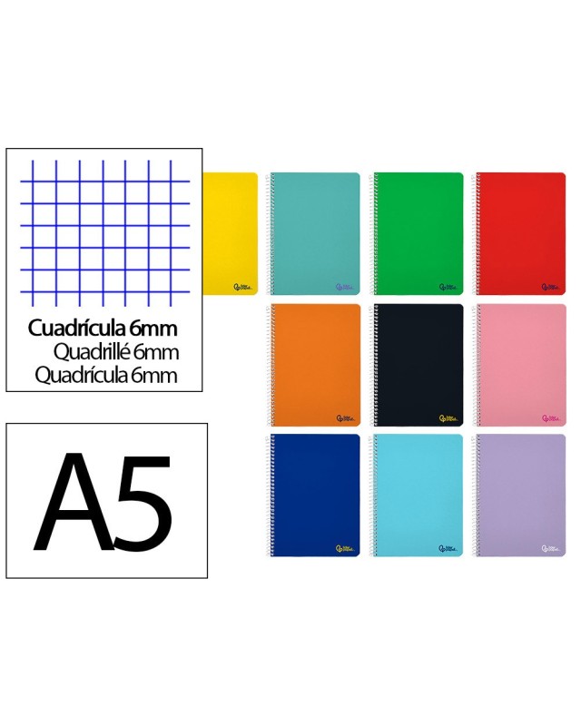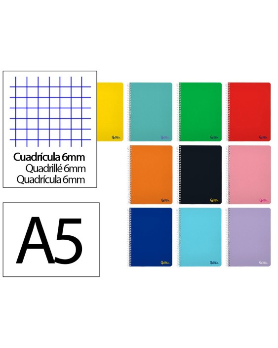 Cuaderno espiral liderpapel a5 smart tapa blanda 80h 75gr cuadro 6mm con margen colores surtidos