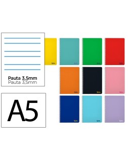 Cuaderno espiral liderpapel a5 smart tapa blanda 80h 75gr pauta 3,5mm con margen colores surtidos