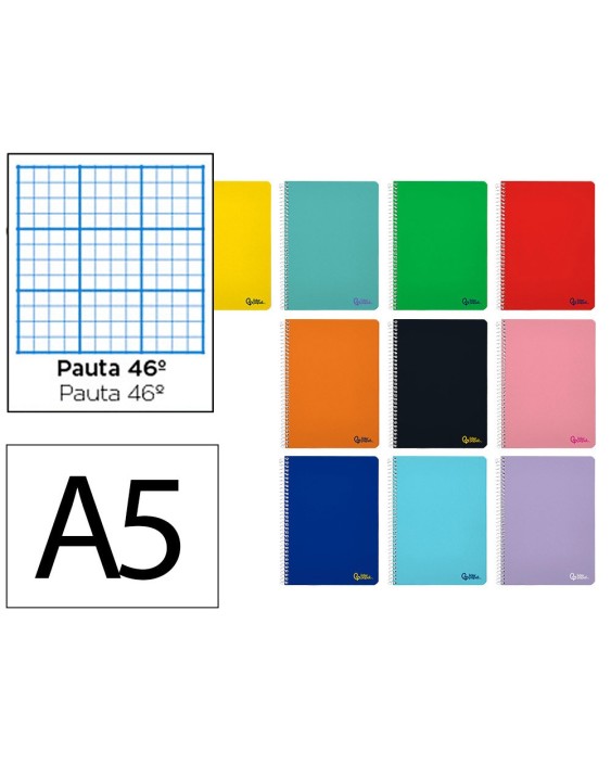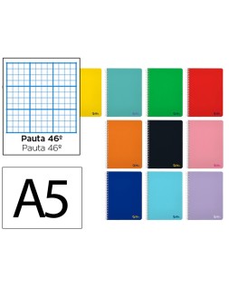 Cuaderno espiral liderpapel a5 smart tapa blanda 80h 75gr rayado nº46 colores surtidos