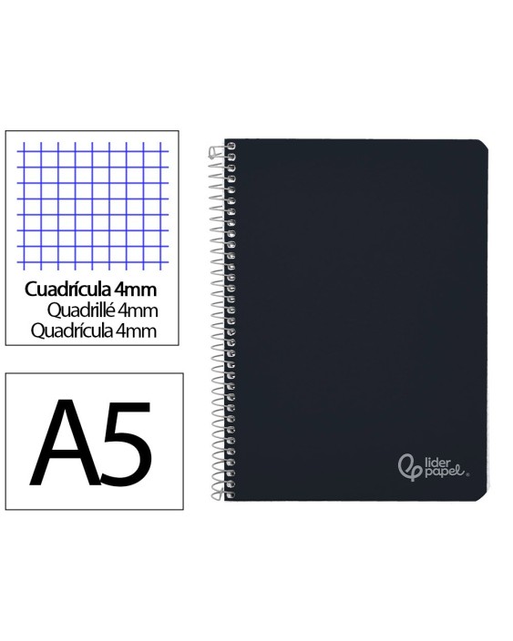 Cuaderno espiral liderpapel a5 witty tapa dura 80h 90gr cuadro 4mm con margen color negro