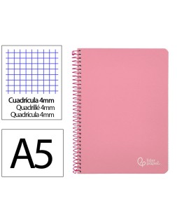 El cuaderno Liderpapel Din A5 Witty con espiral blanco, en un surtido de diez colores, no solo destaca por su funcionalidad, sino tambien por su diseño elegante, tapas de cartón de 800 gramos impresas y con acabado plastificado mate antiroce, que le confiere un aspecto sofisticado y una textura suave al tacto, con 80 hojas de 90 gramos este cuaderno ofrece una excelente calidad de papel, ideal para escribir con diversos tipos de bolígrafos o rotuladores sin que la tinta traspase, su tapa dura proporciona proteccion adicional, manteniendo las notas en perfecto estado incluso con el uso diario. El margen izquierdo facilita la organizacion de las anotaciones, lo que lo convierte en una opcion optima para el ambito academico o profesional.
