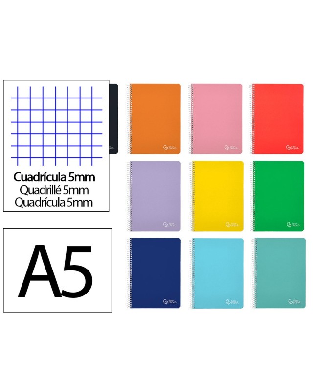 Cuaderno espiral liderpapel a5 witty tapa dura 80h 90gr cuadro 5mm con margen colores surtidos