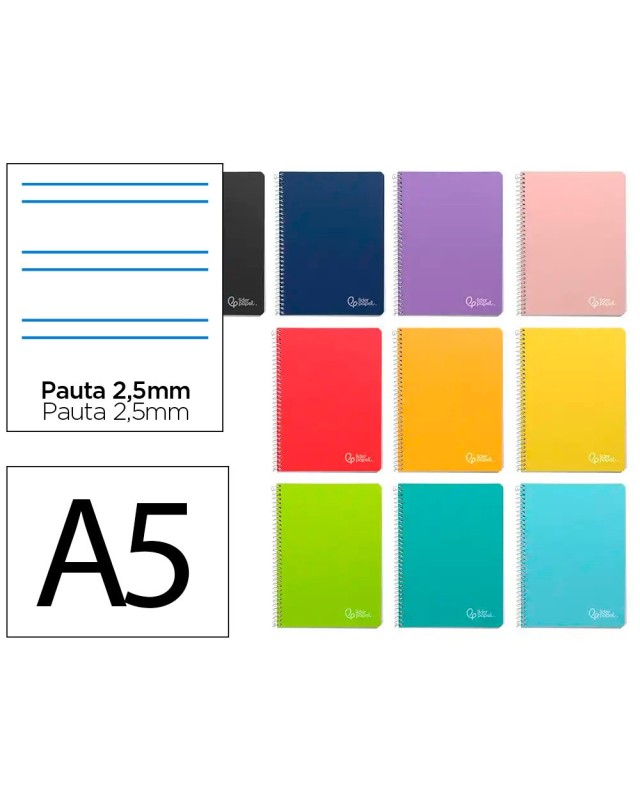 El cuaderno Liderpapel Din A5 Witty con espiral blanco, en un surtido de diez colores, no solo destaca por su funcionalidad, sino tambien por su diseño elegante, tapas de cartón de 800 gramos impresas y con acabado plastificado mate antiroce, que le confiere un aspecto sofisticado y una texturasuave al tacto, con 80 hojas de 90 gramos este cuaderno ofrece una excele nte calidad de papel, ideal para escribir con diversos tipos de bolígrafoso rotuladores sin que la tinta traspase, su tapa dura proporciona protecc ion adicional, manteniendo las notas en perfecto estado incluso con el usodiario. El margen izquierdo facilita la organizacion de las anotaciones, lo que lo convierte en una opcion optima para el ambito academico o profe sional.