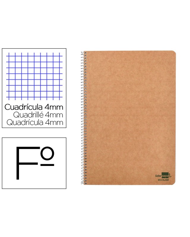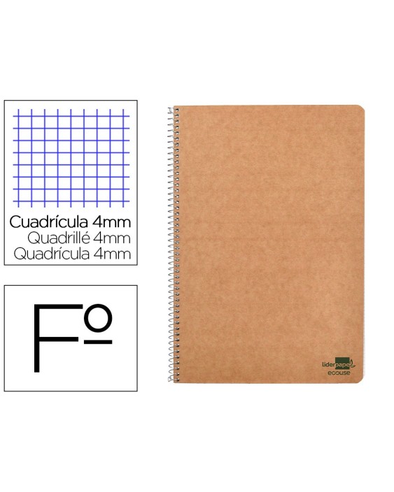 Cuaderno espiral liderpapel din a4 ecouse tapa cartulina kraft 80h papel reciclado 80 gr cuadro 4mm con margen