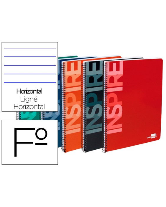 Cuaderno espiral liderpapel folio inspire tapa dura 80h 60 gr horizontal con margen colores surtidos