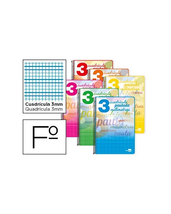 Cuaderno espiral liderpapel folio pautaguia tapa blanda 80h 75gr cuadro pautado 3mm co n margen colores surtidos